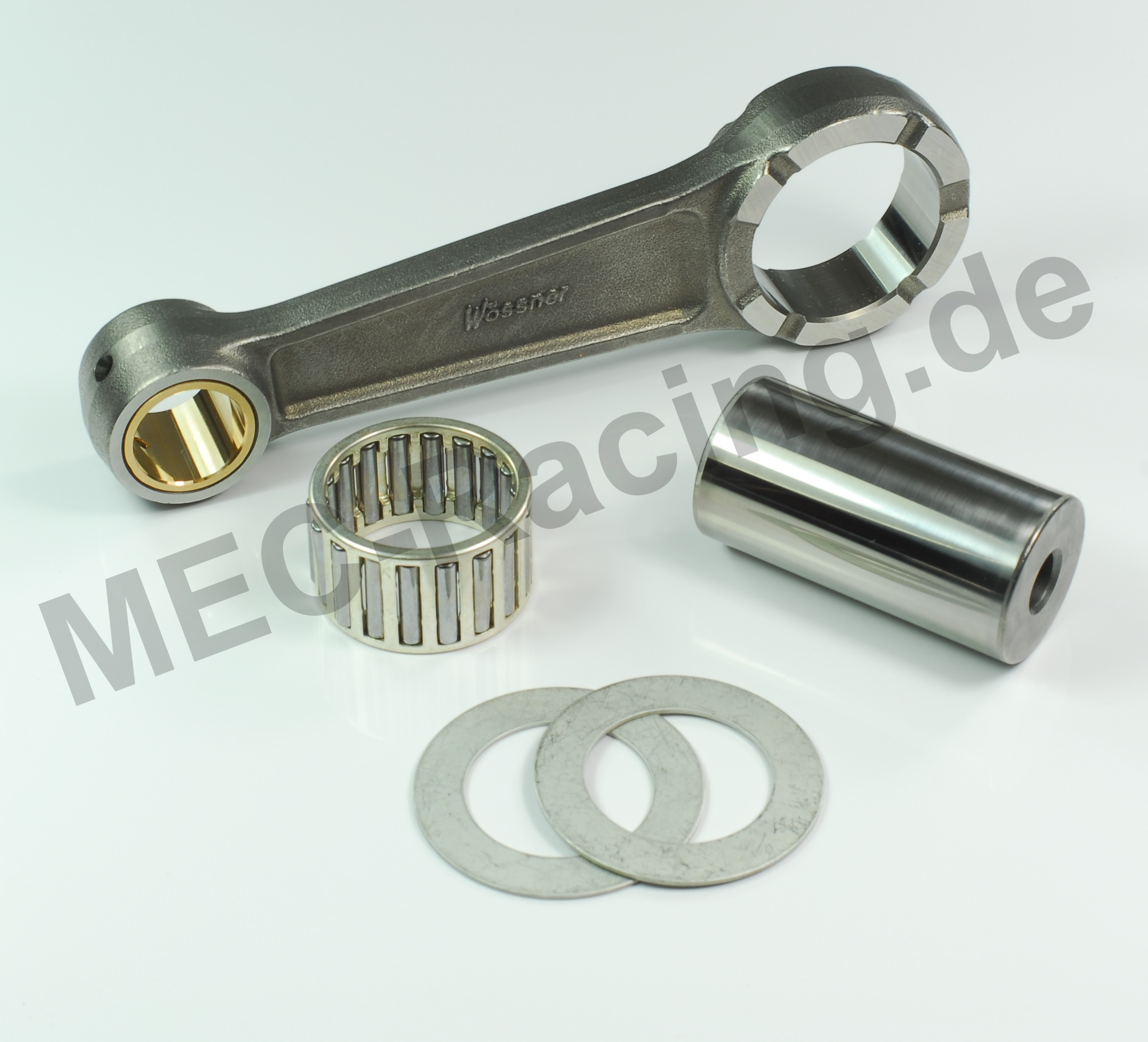 Wössner Pleuelkits werden komplett mit Pleuelstange, Hubzapfen, unteres und ggf. oberes Pleuellager und ggf. Anlaufscheiben geliefert.