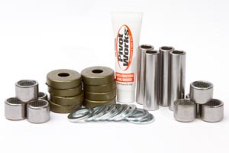 Pivot Works ist eine schnelle, einfache und umfassende Lösung für die Wartung von Lagern und Fahrwerken für Dirt-Bikes und ATVs. Jedes Kit von Pivot Works enthält alle erforderlichen Komponenten (Lager, Dichtungen, Stifte, Distanzringe, Spannringe, Anlaufscheiben und Axiallager), die zum Wiederaufbau jedes Teils des Aufhängungssystems und des Chassis erforderlich sind.
