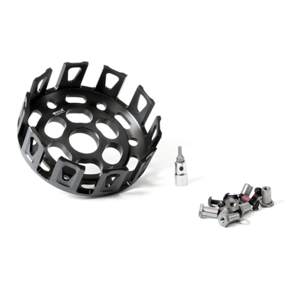 Die Kupplungskörbe von Prox sind nach OEM-Standards aus speziellen Legierungen präzisionsgefertigt welche auch in der Luftfahrt verwendet werden. Anspruchsvolle Hart-Eloxierungen garantieren eine längere Lebensdauer auch bei härtesten Rennbedingungen. Jeder Korb wird incl. aller notwendigen Befestigungsteile geliefert um den Einbau einfach und schnell zu gestalten. Je nach Modell sind auch die Kupplungsruckdämpfergummis enthalten.