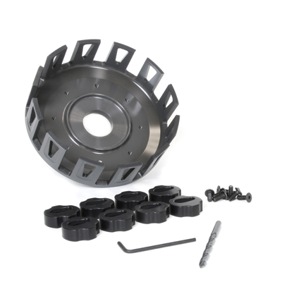 Die Kupplungskörbe von Prox sind nach OEM-Standards aus speziellen Legierungen präzisionsgefertigt welche auch in der Luftfahrt verwendet werden. Anspruchsvolle Hart-Eloxierungen garantieren eine längere Lebensdauer auch bei härtesten Rennbedingungen. Jeder Korb wird incl. aller notwendigen Befestigungsteile geliefert um den Einbau einfach und schnell zu gestalten. Je nach Modell sind auch die Kupplungsruckdämpfergummis enthalten.