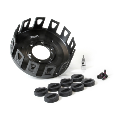 Die Kupplungskörbe von Prox sind nach OEM-Standards aus speziellen Legierungen präzisionsgefertigt welche auch in der Luftfahrt verwendet werden. Anspruchsvolle Hart-Eloxierungen garantieren eine längere Lebensdauer auch bei härtesten Rennbedingungen. Jeder Korb wird incl. aller notwendigen Befestigungsteile geliefert um den Einbau einfach und schnell zu gestalten. Je nach Modell sind auch die Kupplungsruckdämpfergummis enthalten.